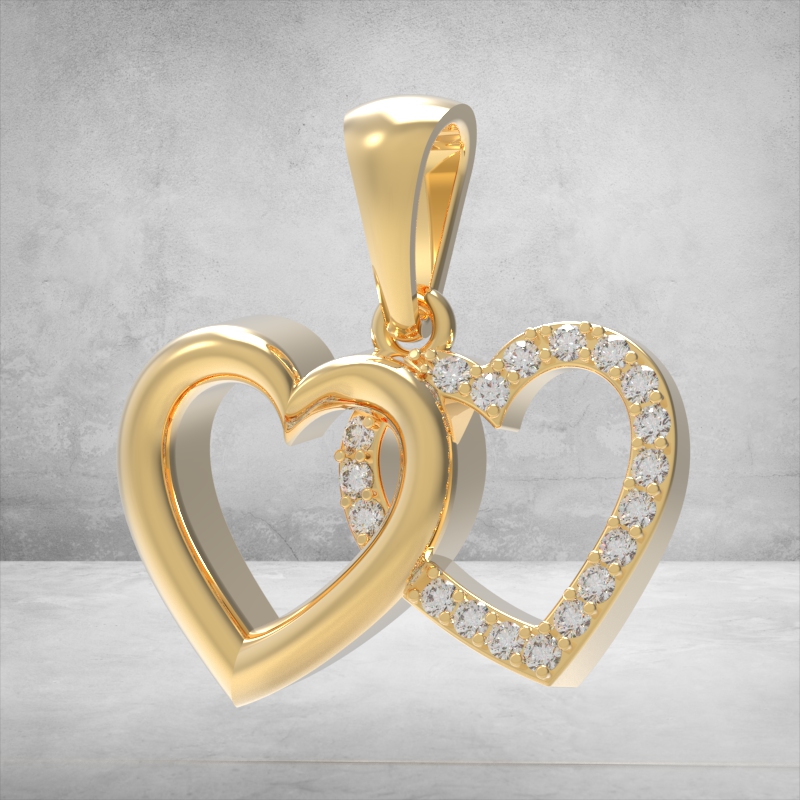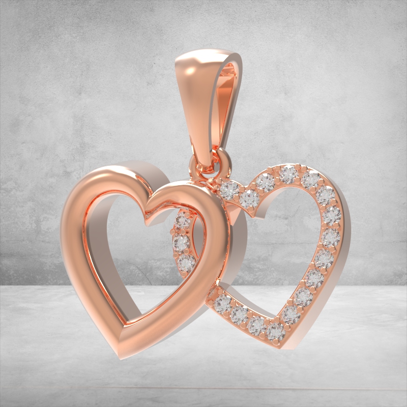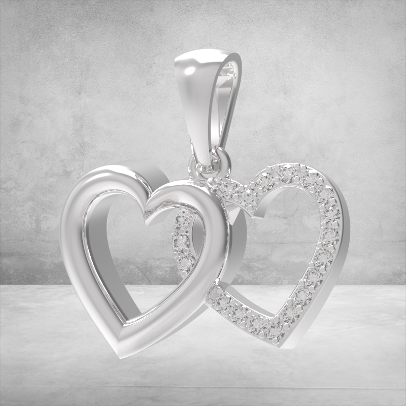кулон серце, подвійне серце кулон, підвіска серця, підвіска для закоханих, романтичний кулон, кулон з камінням, подарунок дівчині, ювелірні прикраси 3D модель, подвійні серця підвіска, PH-012