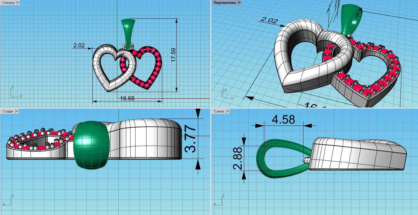 3D модель • Кулон «Подвійні Серця» • Артикул: PH-012