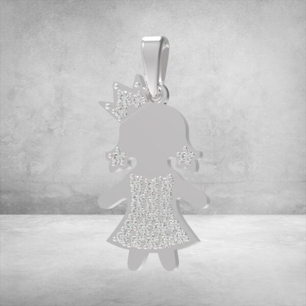 Цей елегантний кулон у формі маленької дівчинки-принцеси виблискує десятками камінців, створюючи ефект сяючого вбрання. Він поєднує ніжність силуету та розкіш інкрустації, роблячи прикрасу чудовим подарунком для мами, доньки чи коханої. Стильний акцент — корона та сережки, інкрустовані камінням, що додає витонченості та благородного блиску.