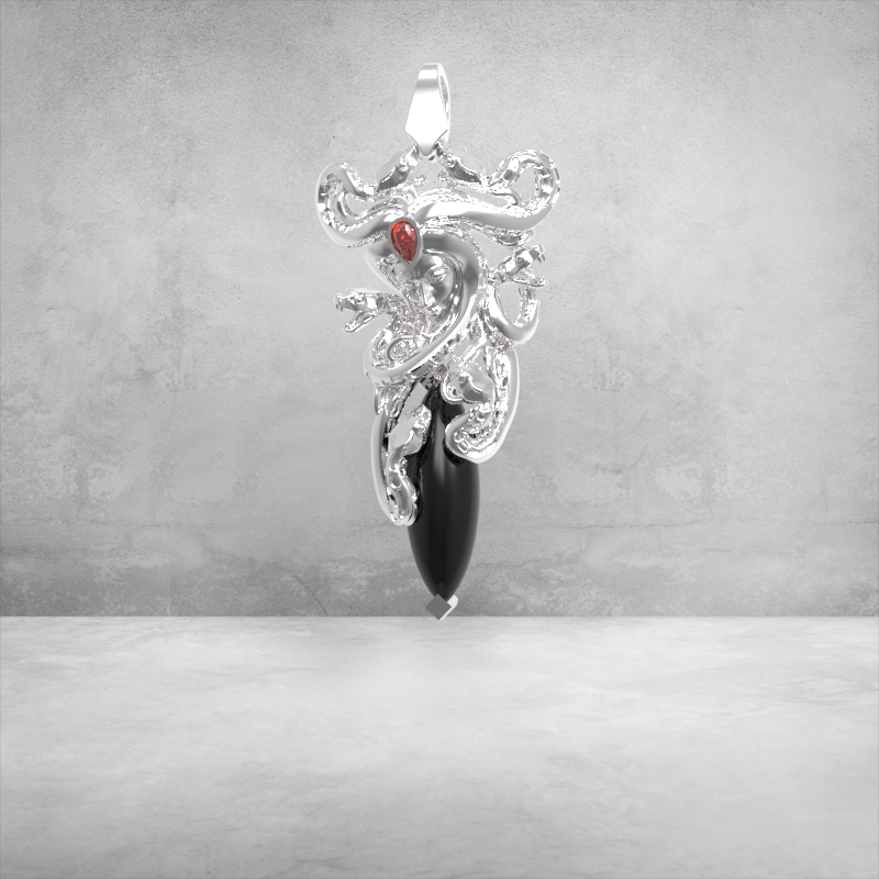 кулон медуза 3d, кулон жіночий медуза, 3d модель кулона з чорним каменем, дизайнерський кулон, ювелірна модель медуза, авторська біжутерія 3d, STL кулон медуза, купити 3d модель кулона, загадковий кулон жінці