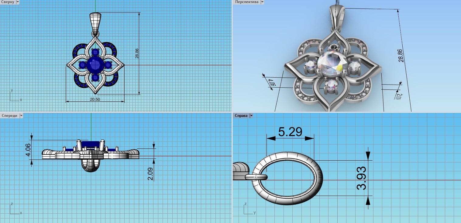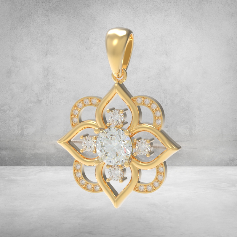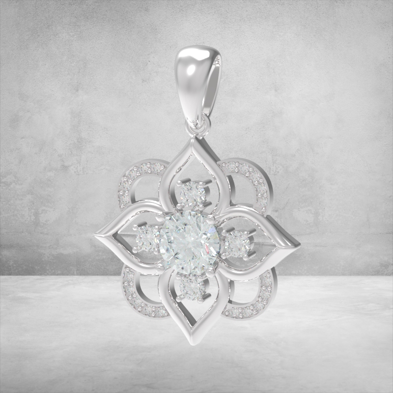 3D модель кулона квітка, STL підвіска з камінням, 3D квітковий кулон, ювелірна модель квітка зі вставками, рендер кулона з діамантом, STL flower pendant, модель підвісу з центровим каменем.