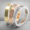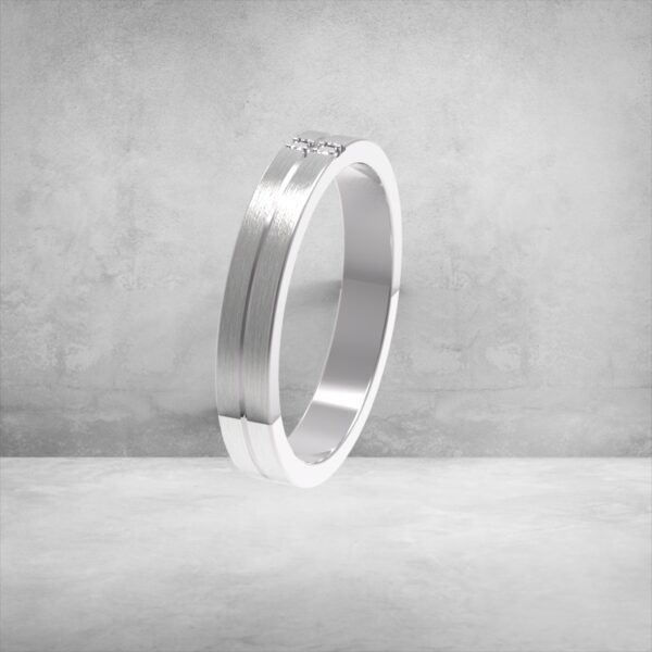 Вишукана та лаконічна обручка шириною 3,5 мм, що поєднує матову площину та глянцеву грань, розділені витонченою канавкою.