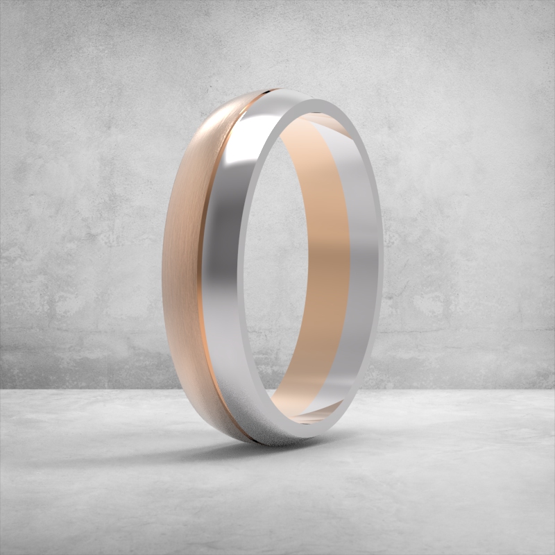 Обручка «Дуо Контраст» — це поєднання двох фактур і двох металів у вишуканому плавному переході. М’яка сатинова текстура гармонійно контрастує з глянцевою поверхнею, створюючи акцентний вигин по центру. Модель виглядає сучасно, стильно й дуже універсально — ідеальна як для чоловічої, так і для жіночої пари.