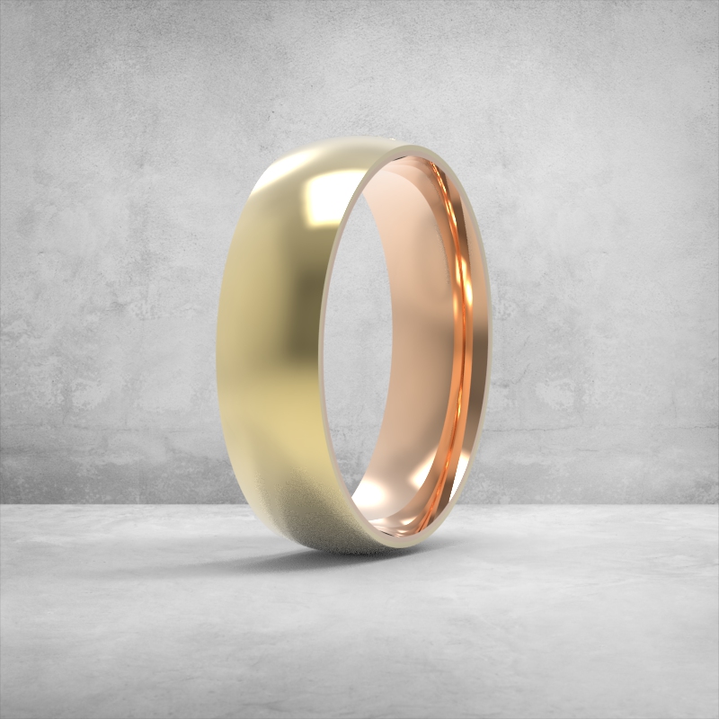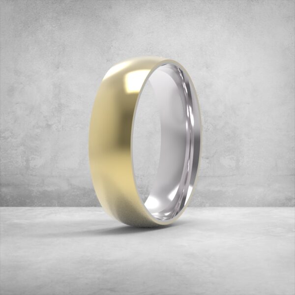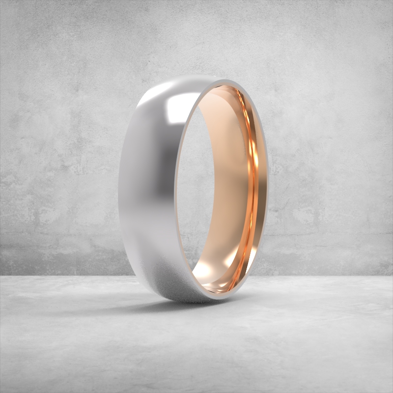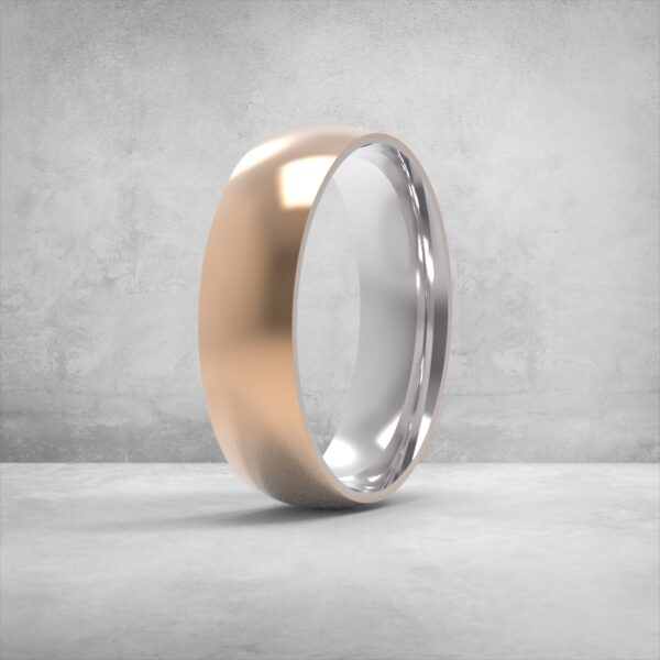 обручка 6 мм, широка обручка, чоловіча обручка 6мм, комбінована обручка, двоколірна обручка, білий метал + рожеве золото, 3D модель обручки, стильна весільна обручка, гладка обручка