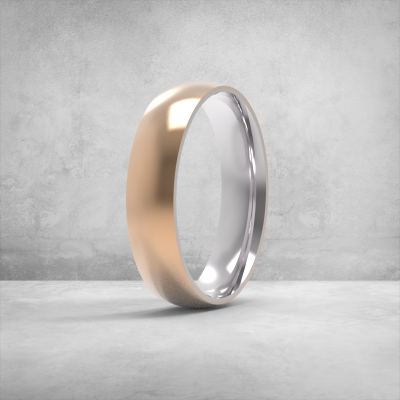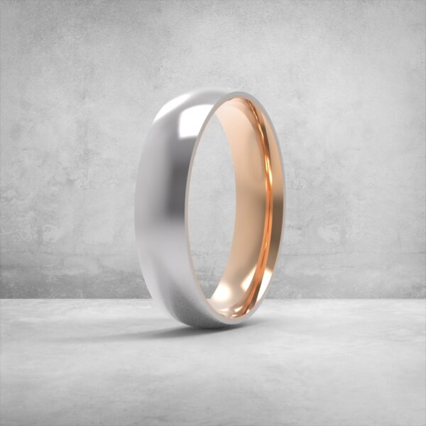 обручка 5 мм, комбінована обручка, двоколірна обручка, білий метал і рожеве золото, гладка обручка, класична обручка 5мм, 3D модель обручки, весільні обручки, стильна обручк