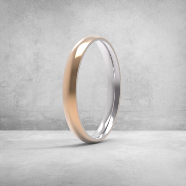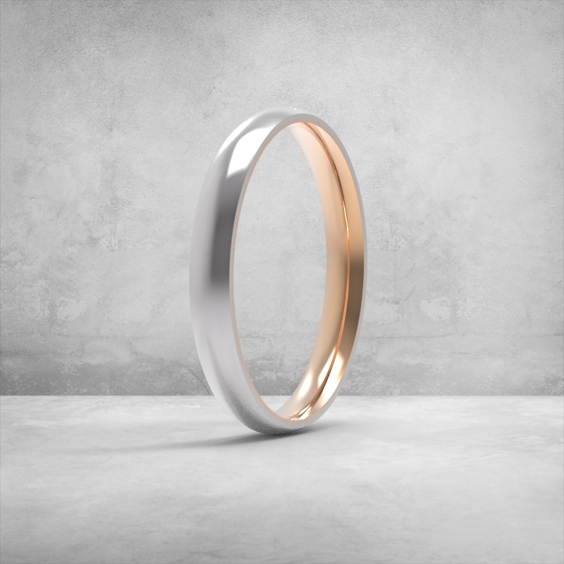 Витончена двоколірна обручка шириною 3 мм — мінімалізм у найчистішому вигляді. Зовнішній шар виконаний у білому металі, а внутрішня частина має теплий відтінок рожевого золота, створюючи елегантний контраст.