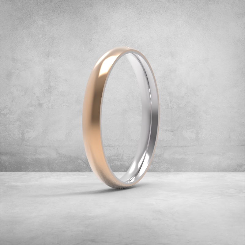 обручка 3 мм, тонка обручка, вузька обручка білий метал, комбінована обручка, двоколірна обручка, жіноча обручка 3мм, 3D модель обручки, гладка обручка, весільна обручка тонка