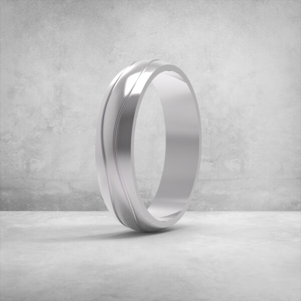 Обручка «Граційна Хвиля» — це поєднання плавності та строгої геометрії. Легкий хвилеподібний вигин, що проходить через центр кільця, створює динаміку та вишуканий акцент. Модель виглядає ніжно, але водночас солідно, підходить як для жіночих, так і для чоловічих комплектів.