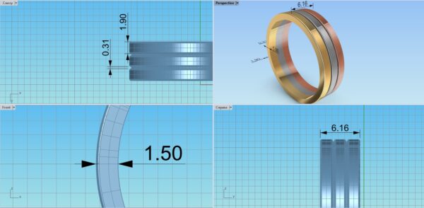 обручка три кольори золота, комбінована обручка, обручки на замовлення, золота обручка триколірна, весільні кільця золото, 3D модель обручки STL, обручка з білим жовтим рожевим золотом, дизайнерська обручка