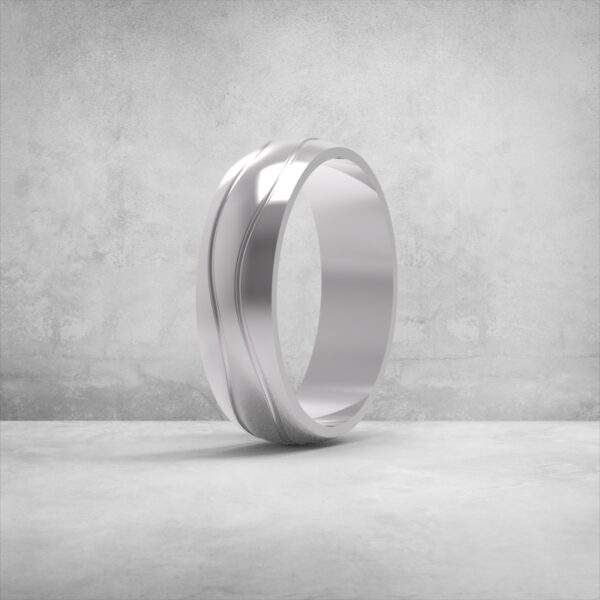 Обручка «Хвиля Єдності» — це стильна інтерпретація класики, де плавна хвиля по центру символізує гармонію та взаємне доповнення. Модель поєднує глянцеві та сатиновані площини, створюючи глибину та легке відчуття руху.