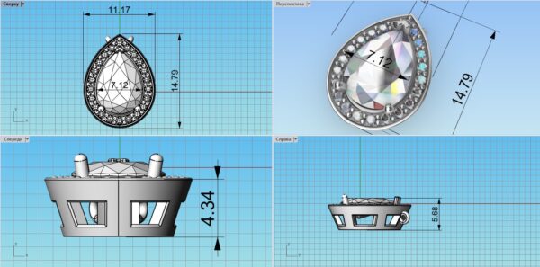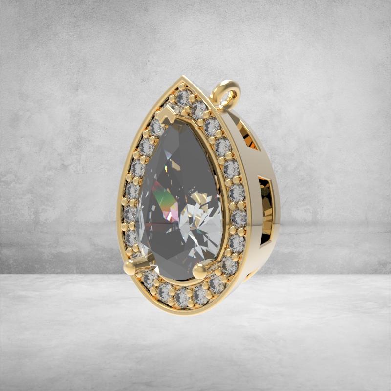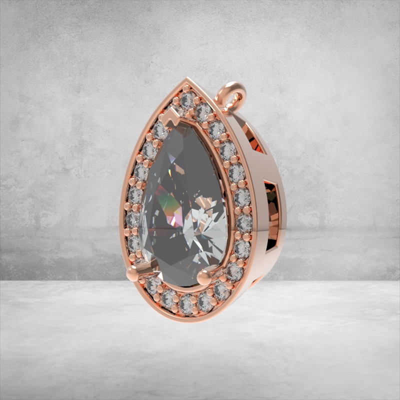 підвіска крапля, кулон із великим каменем, підвіска грушоподібна, жіночий кулон зі вставками, ювелірний кулон 3D модель, купити STL кулон, кулон з камінням, підвіска halo, дизайнерська підвіска, 3D модель ювелірних прикрас.