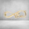 Вишуканий кулон «Нескінченне кохання» у формі символу нескінченності, доповнений елегантним написом love та мініатюрною вставкою. Легкі плавні лінії, чиста геометрія та символіка одвічного зв’язку роблять цю підвіску універсальною прикрасою для щоденного носіння або подарунком із глибоким змістом.