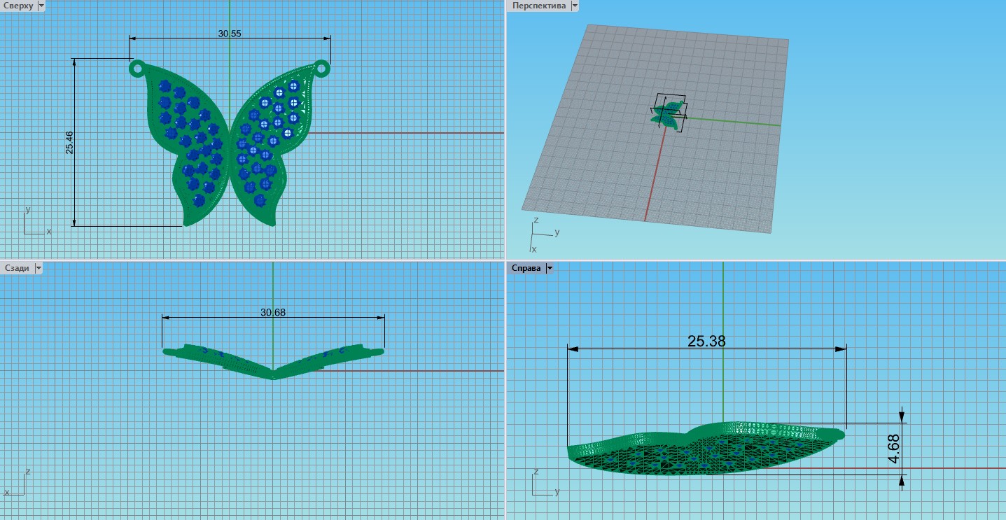 3D модель • кулон • „Метелик подвійний сяючий“ • Артикул: PN-040