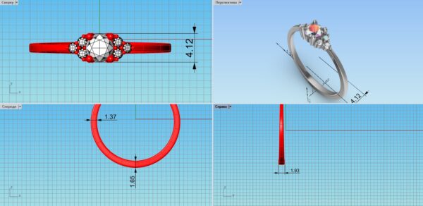 помолвочне кільце, обручка з каменем, золоте кільце з діамантом, кільце трійка, жіноча каблучка, каблучка для заручин, 3D модель кільця, STL модель каблучки, ювелірний дизайн, кільце з фіанітами, каблучка в подарунок.