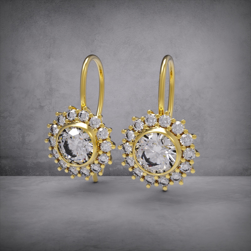 сережки SR, сережки halo, сережки гало, золоті сережки з каменем, сережки підвіски, сережки з діамантами, модель сережок 3D, STL сережки, ювелірна 3D модель, сережки класика.