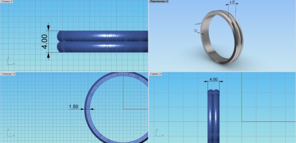 обручка хвиля 4 мм, тонка обручка, гладка обручка, дизайнерська обручка, сучасні обручки, весільні кільця, жіноча обручка 4 мм, 3D модель обручки, купити обручку хвиля